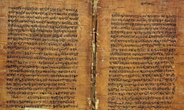 Imagen de uno de los manuscritos Vedas donde se hace mención al Yoga como filosofía de vida